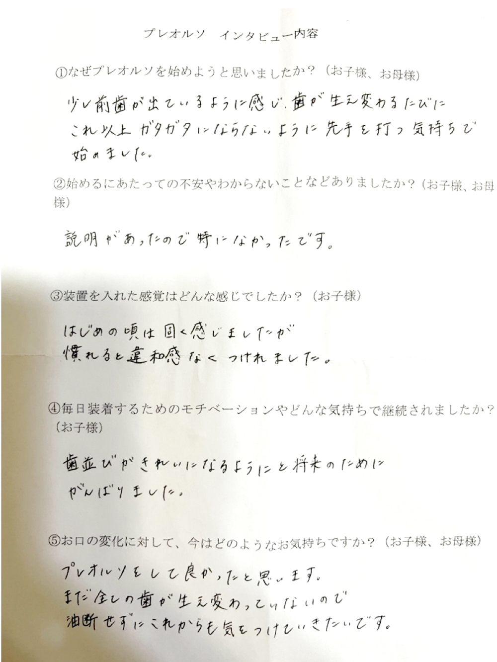 小学2年生から2年間プレオルソを頑張ってくれた患者様