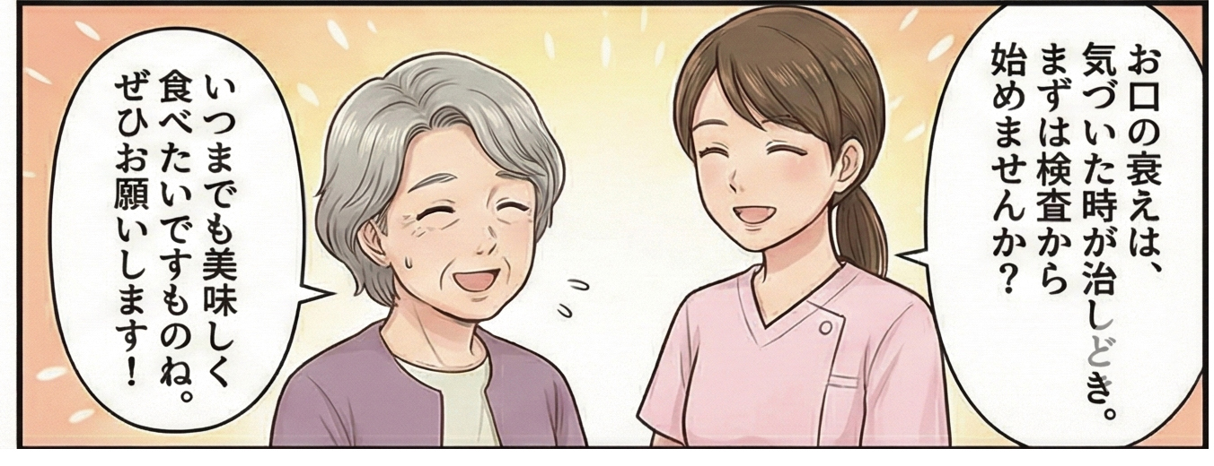 「最近、お茶でむせたりしませんか?」 いつまでも美味しく食べるために。保険でできるお口の若返りチェック(口腔機能低下症検査)