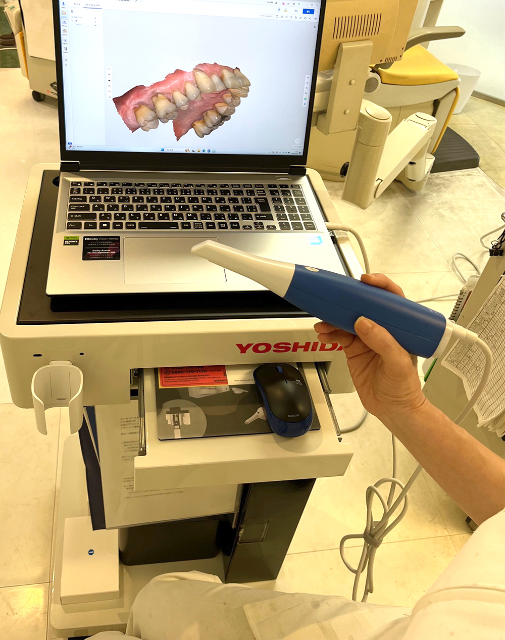 口腔内スキャナーとは、お口の中を専用のカメラでスキャンし、歯や歯茎の形状を精密な3Dデータとして記録する最新のデジタル機器です。従来の粘土のような材料を使った型取りに代わる、次世代の歯科診療技術として注目されています。